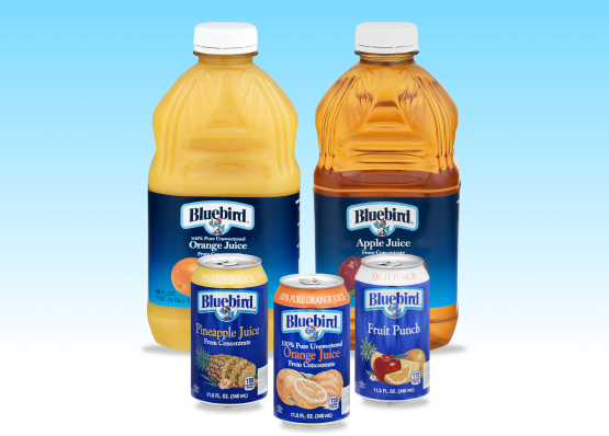Whether it’s 100% pure orange juice with no added sugar, or delicious juice drinks made from only the finest ingredients, Bluebird has it covered. Enjoy the convenience of our resealable and shelf-stable products.